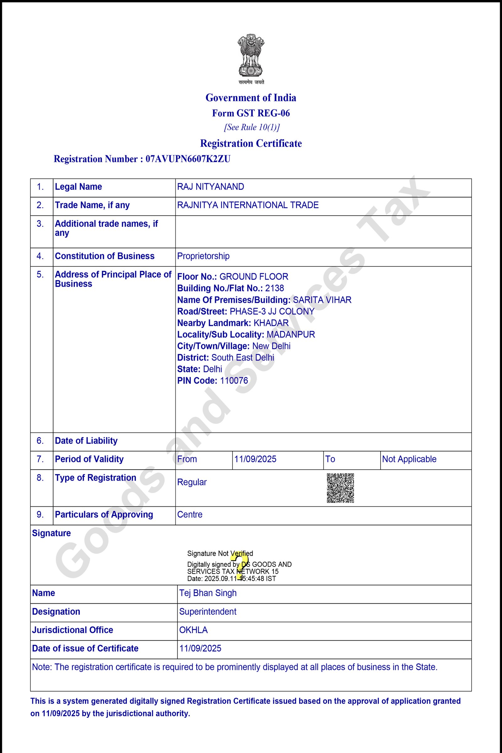 Madanpur, South East Delhi, Delhi 110076.